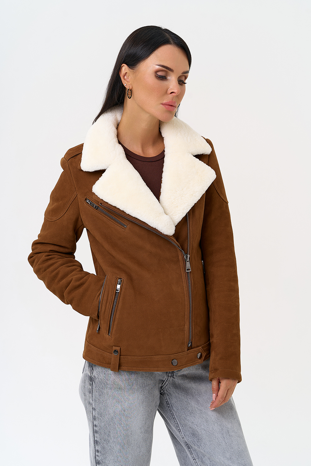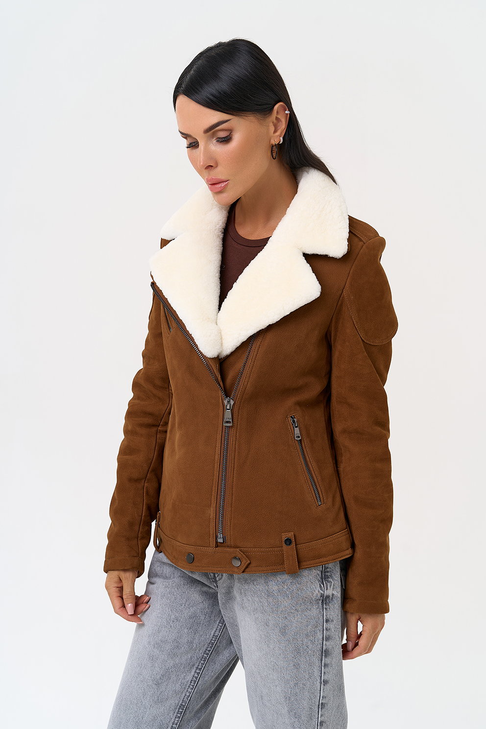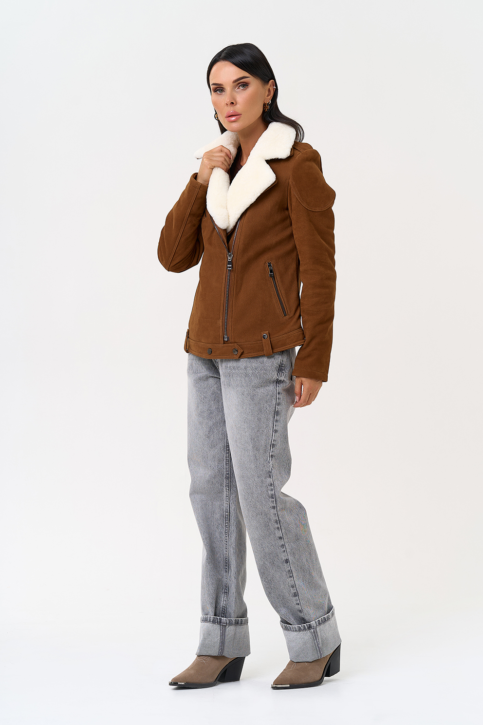 Тип ворота - отложной воротник, отделка овчина