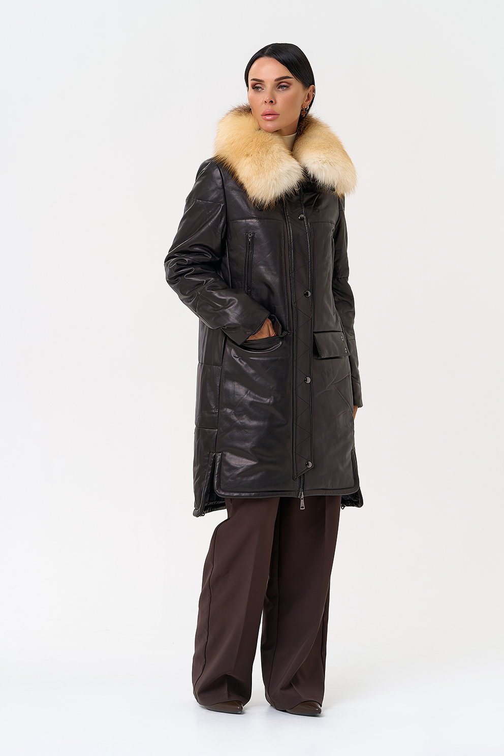 Пуховик из натуральной кожи