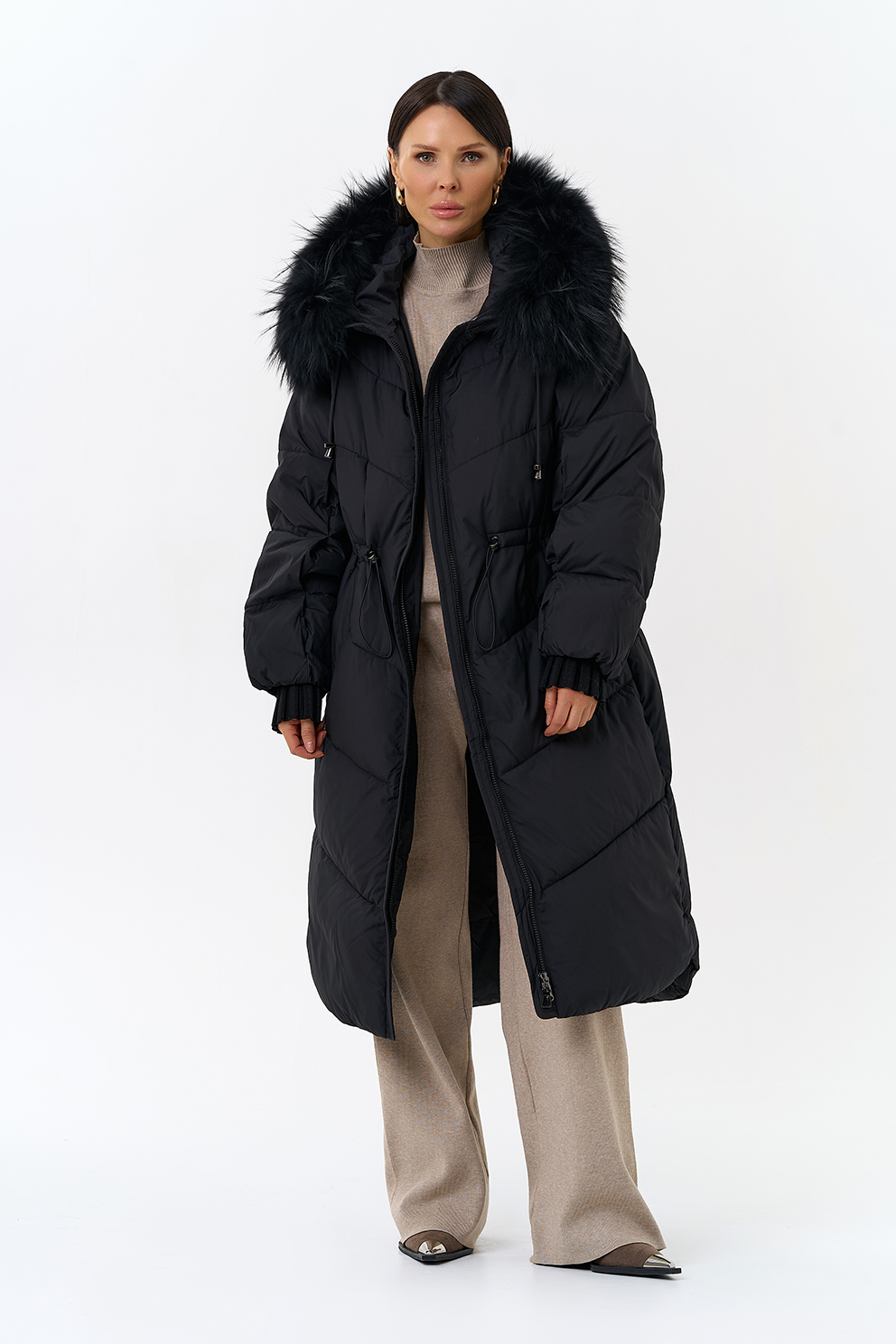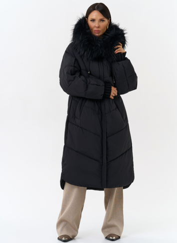 Крой воротника - капюшон, отделка чернобурка